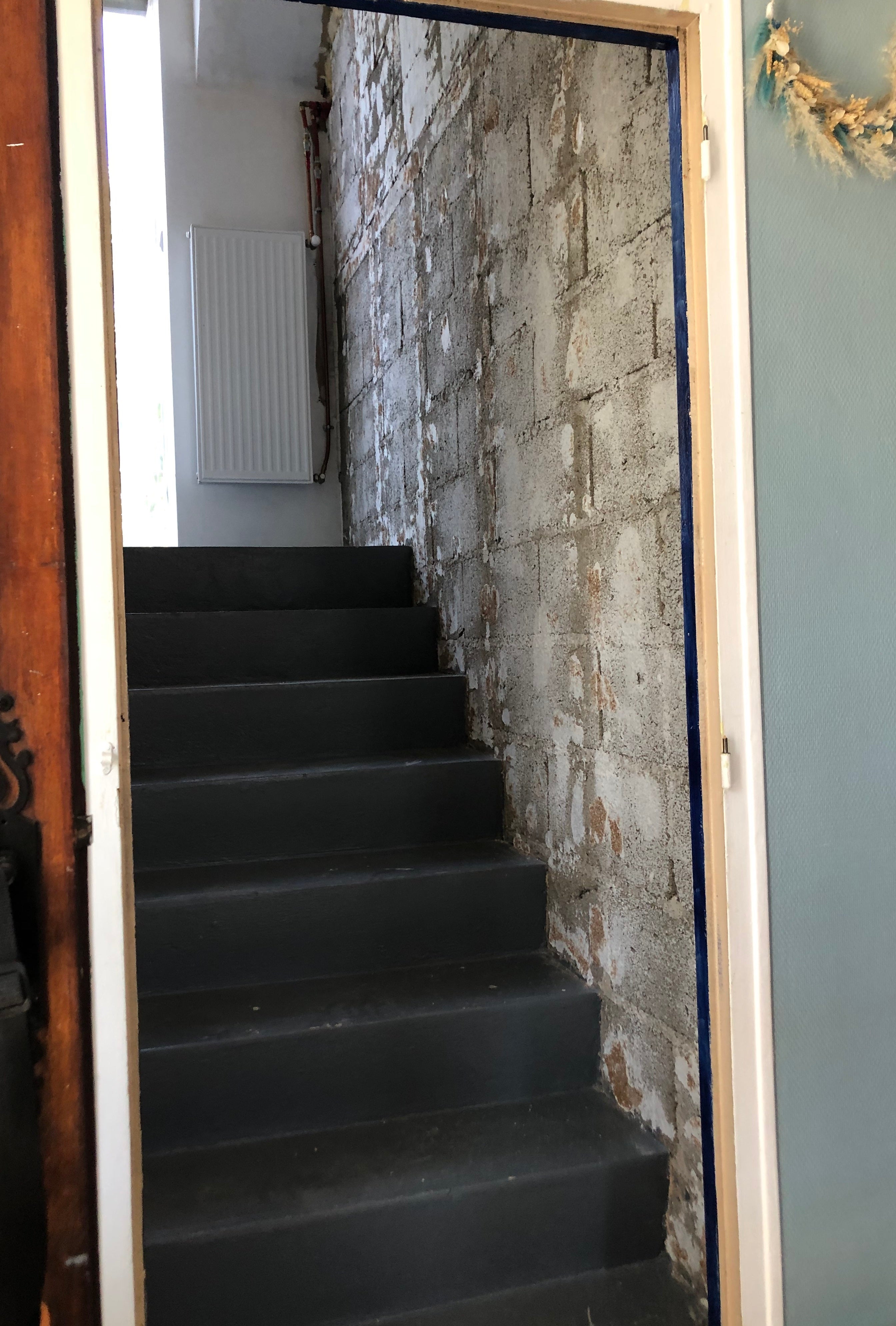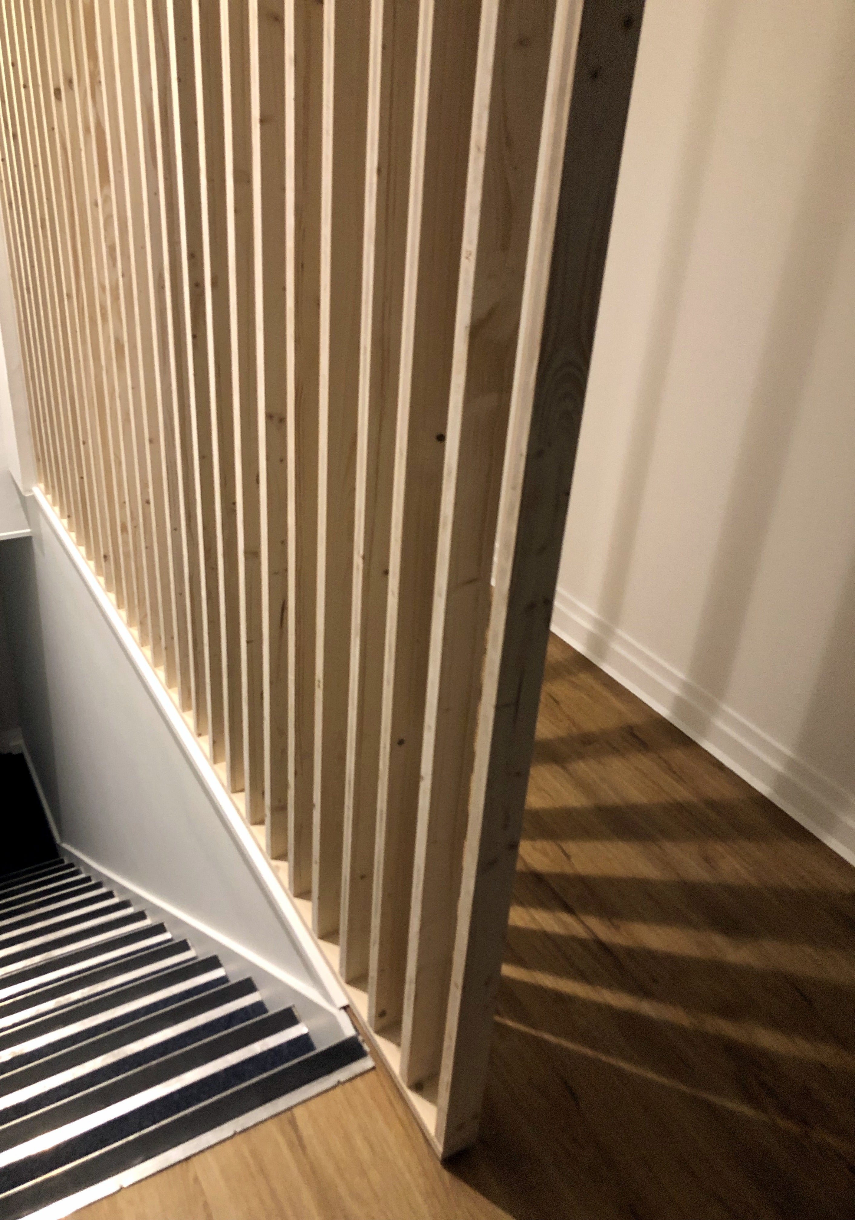 Claustra décoratif au droit de la trémie d'escalier, faisant office de garde corps