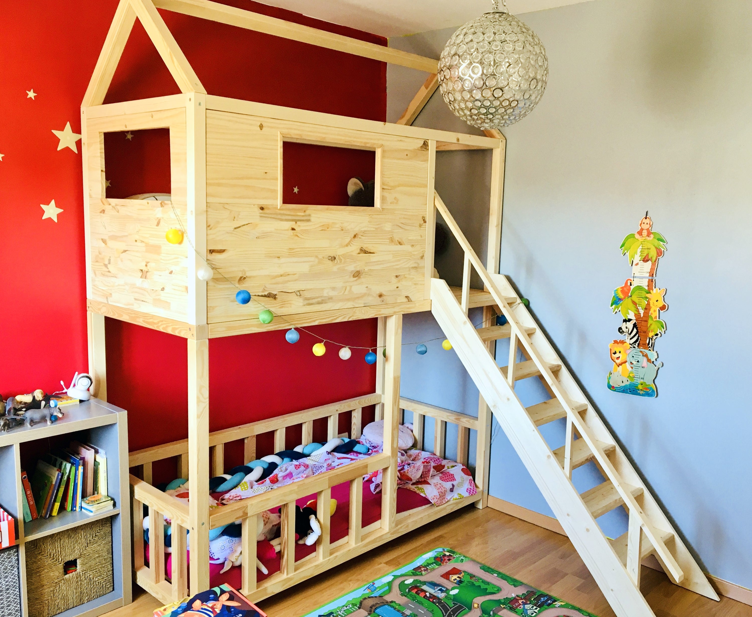 Fabrication d'un lit cabane pour enfant sur deux niveaux en pin