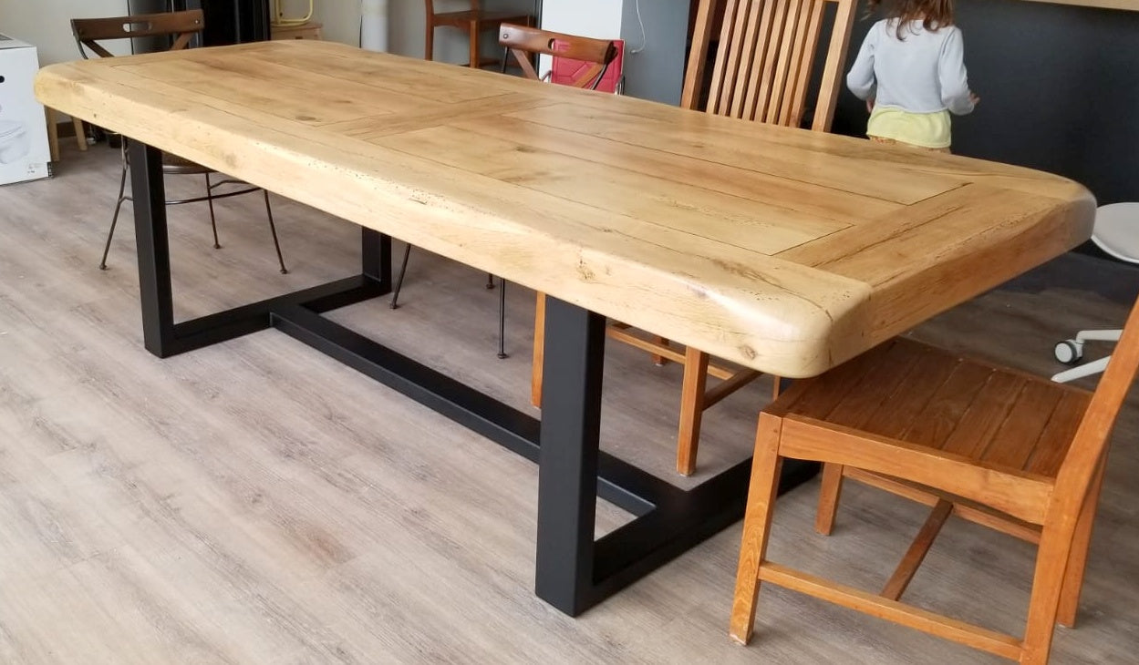 Notre client nous confie la réfection et le relooking intégral de cette ancienne table à manger de style monastère.