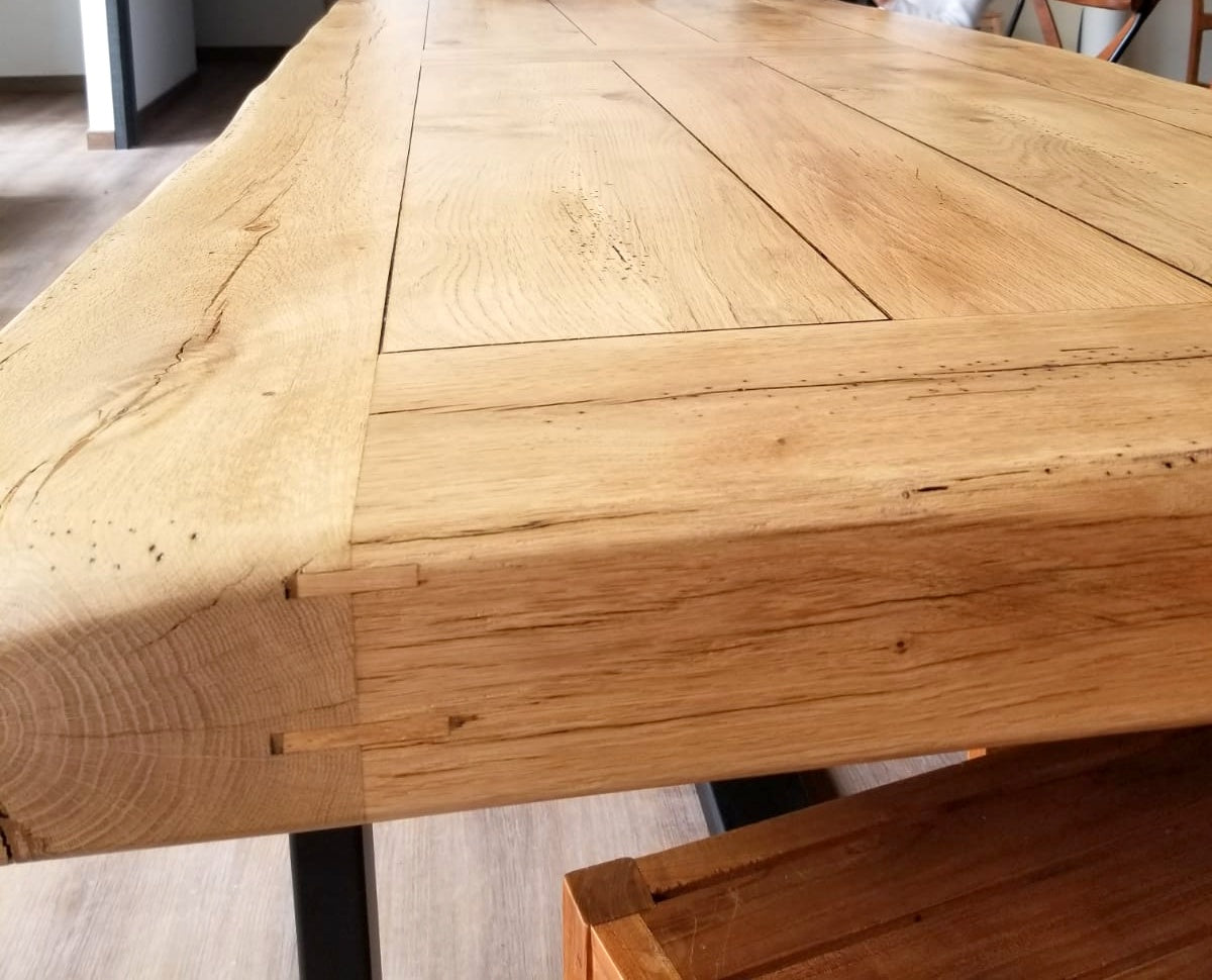Réalisation d'une table à manger intégralement en Chêne massif provenant du Morvan