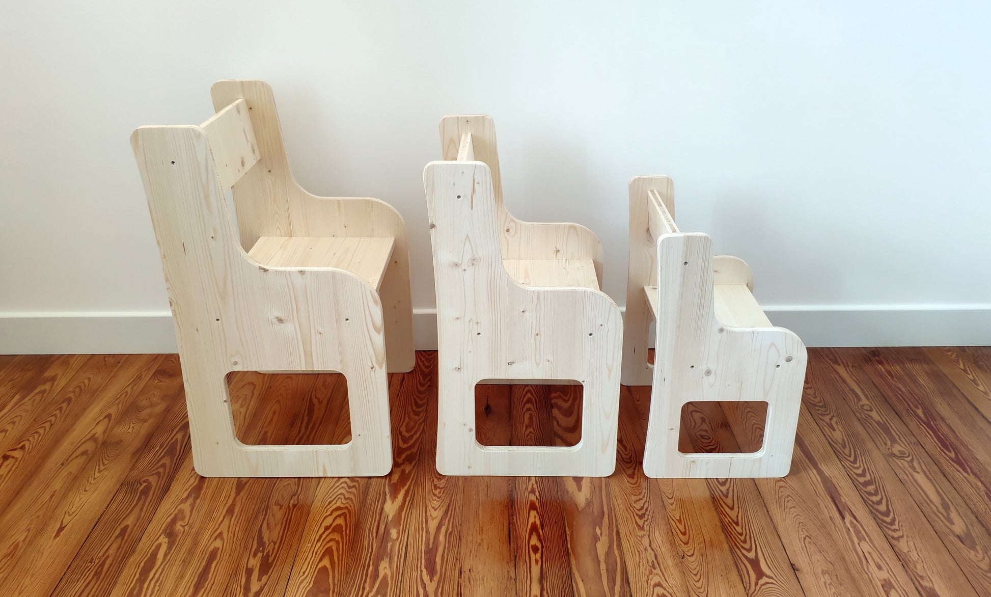 Découvrez notre collection de chaises en bois FIL Mobilier spécialement conçu pour les enfants, avec trois tailles différentes disponibles pour s'adapter à leur croissance et à leurs besoins changeants !