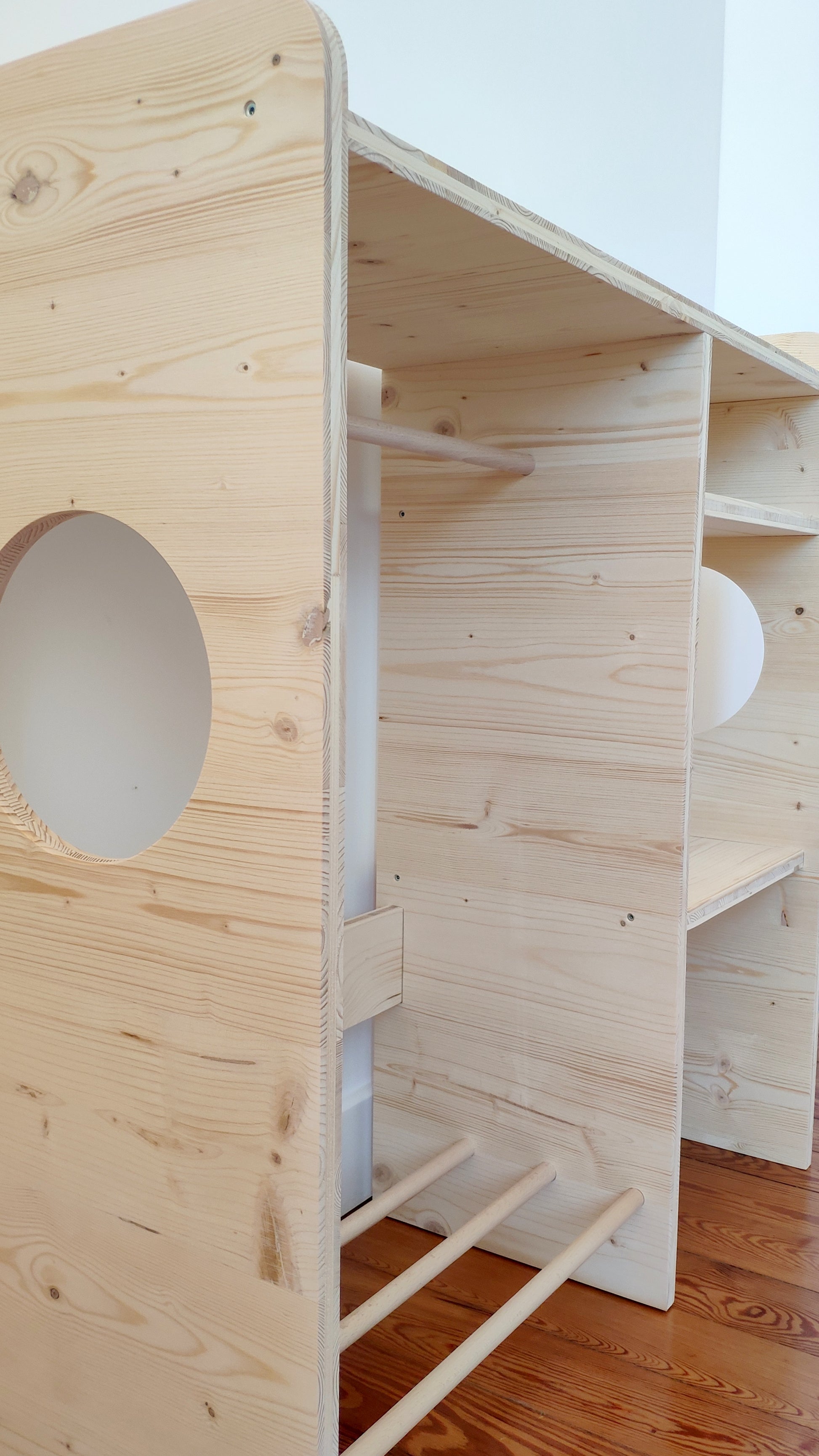 La penderie pour enfants FIL Mobilier est conçue pour une utilisation aisée dès qu'ils se tiennent debout. Chaque pièce est entièrement fabriquée à la main dans mon atelier en Côte d'Or, avec du bois d'épicéa 3 plis brut, naturel et 100% français.