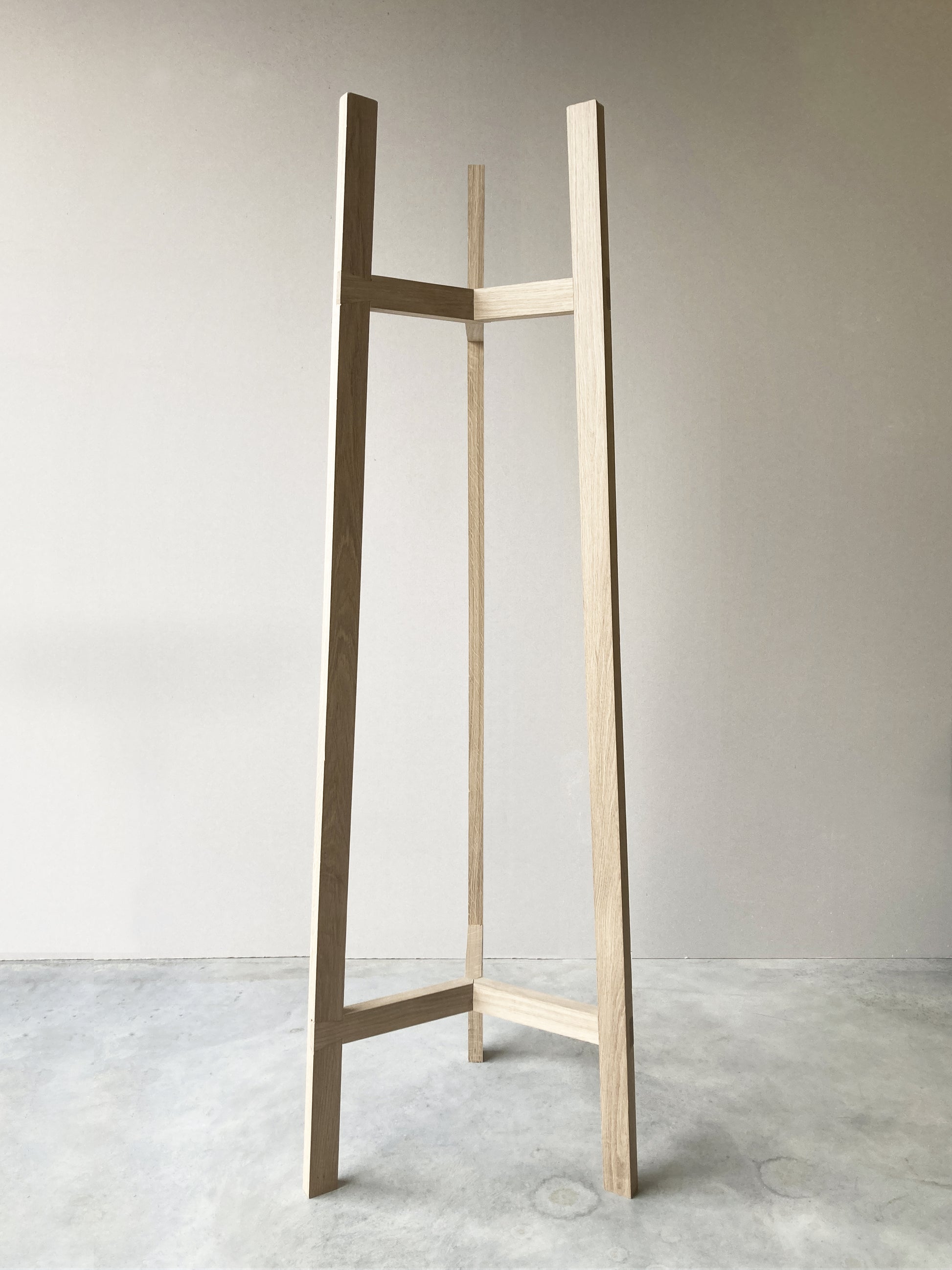 La traverse haute vous permettra de suspendre parapluie et écharpe. Le chanfrein des trois pieds permet de supporter tout type d’habits sans risque de déchirures.