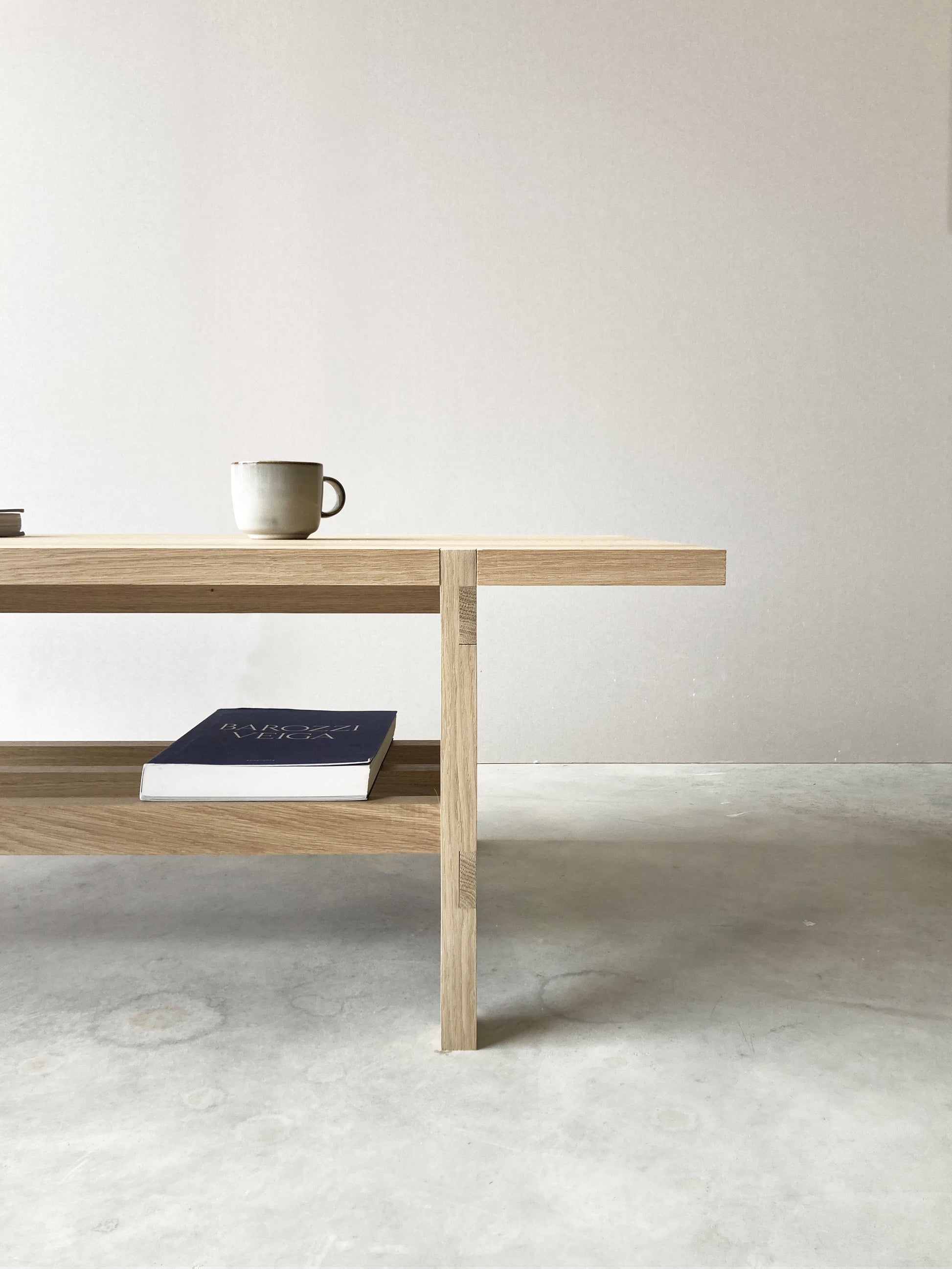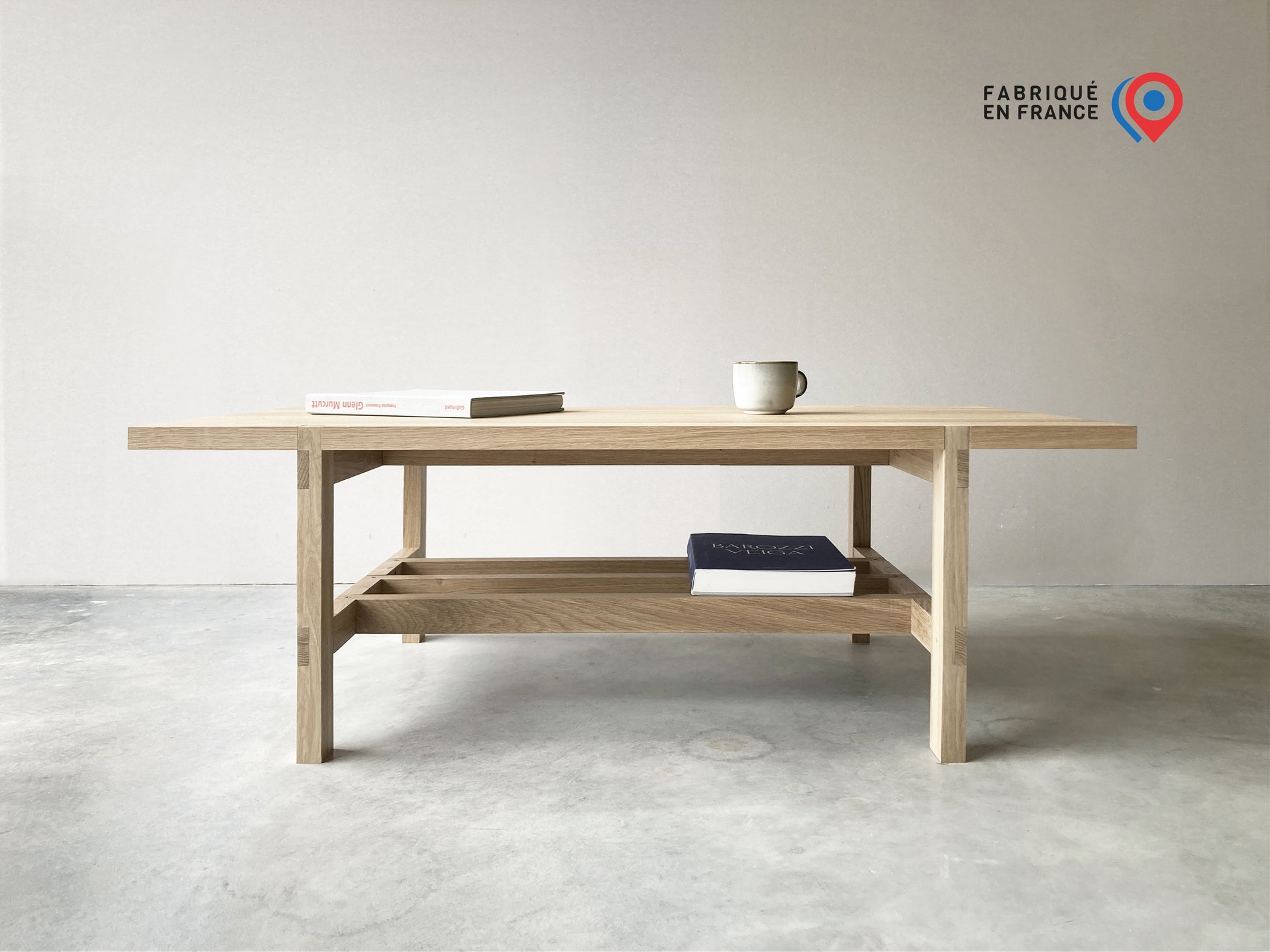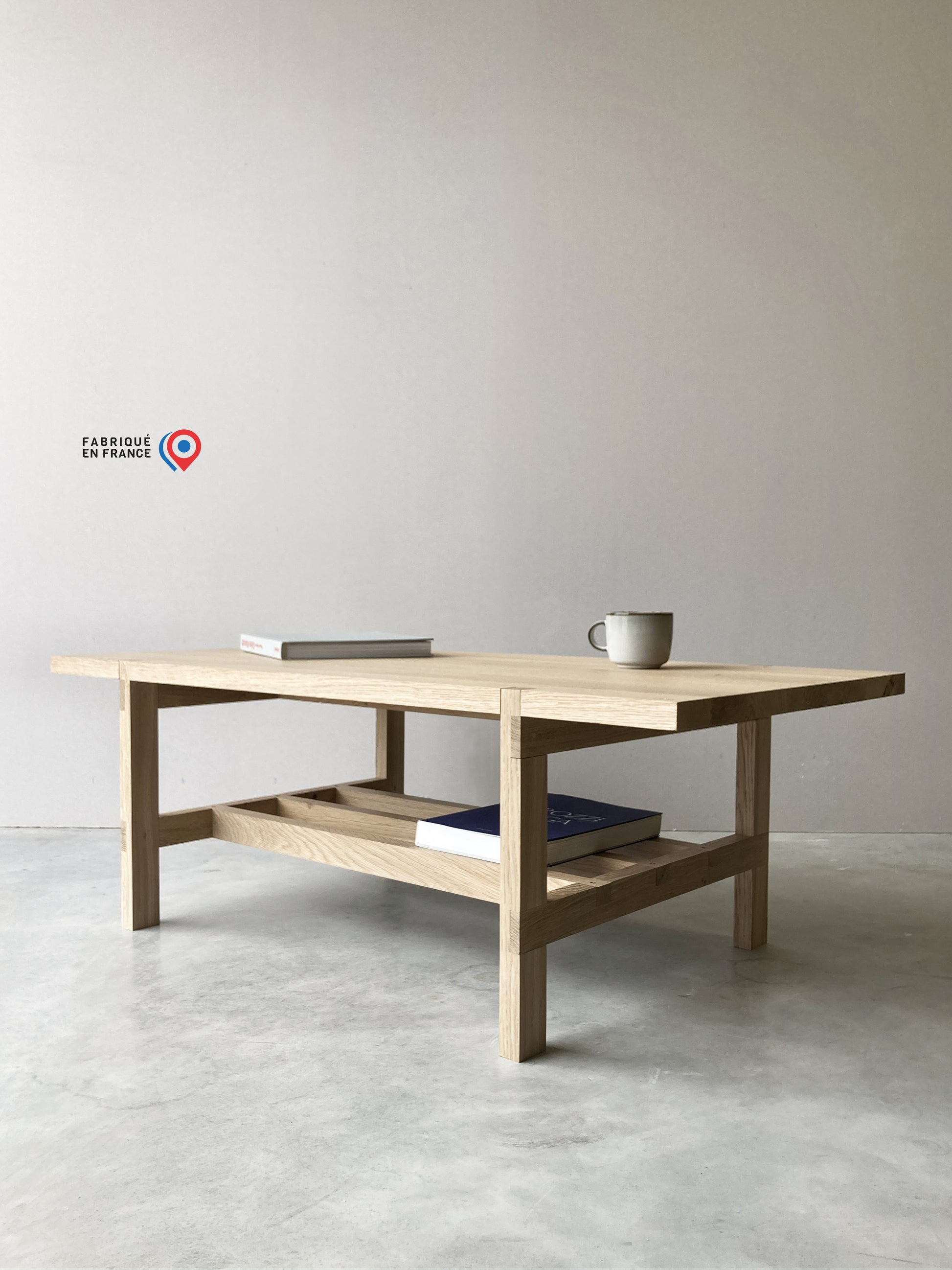 La table basse en chêne massif FIL Mobilier conjugue avec élégance design minimaliste et esprit fonctionnel.