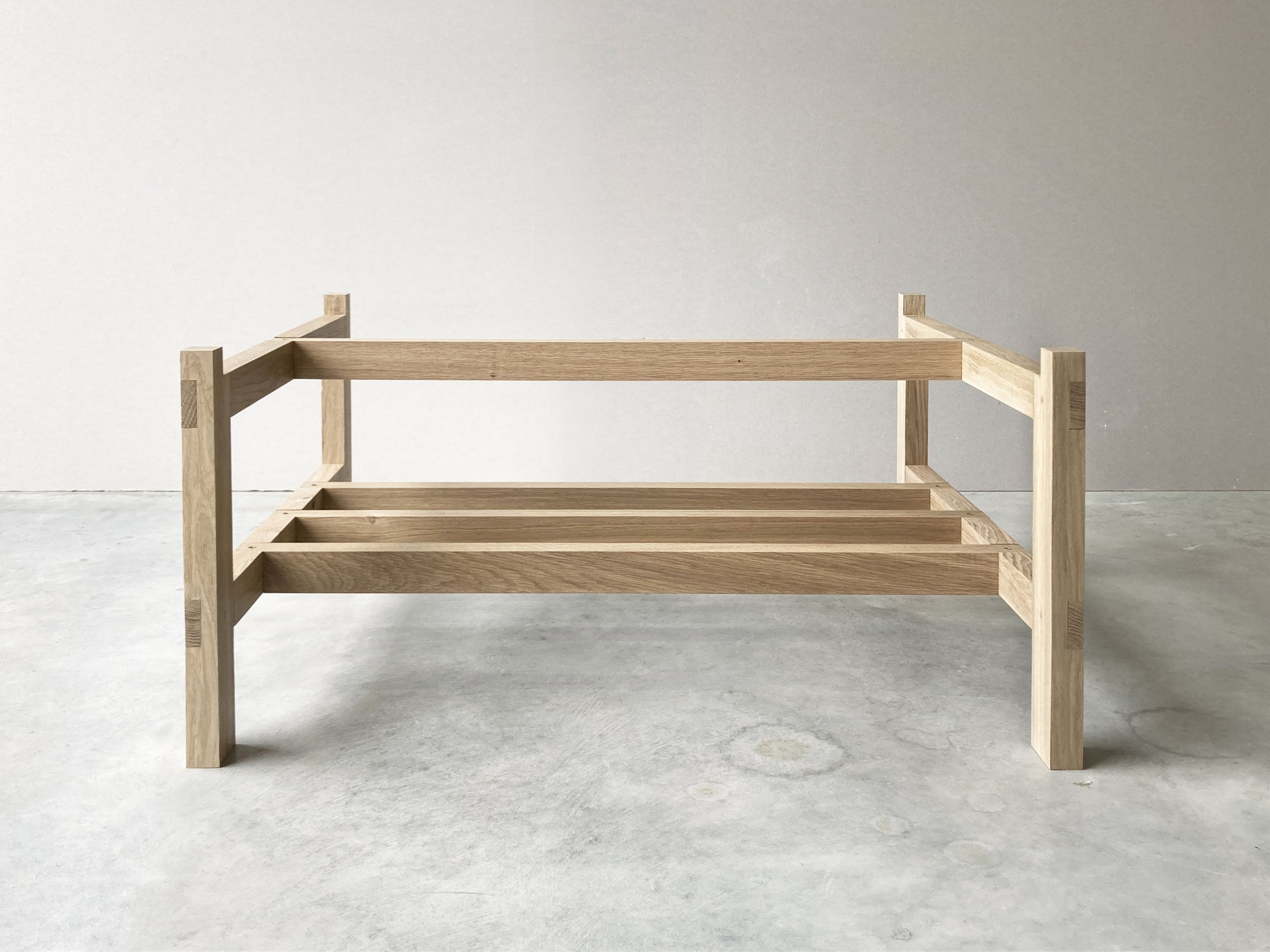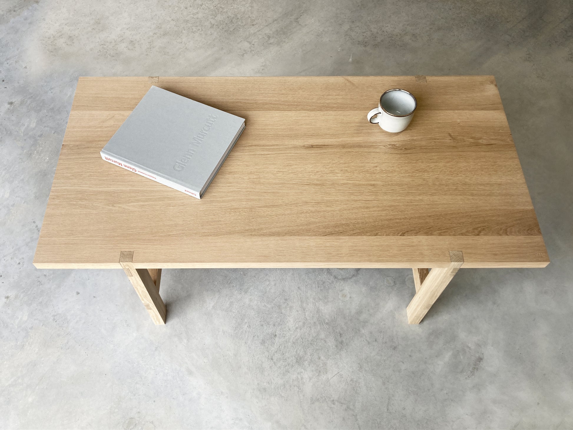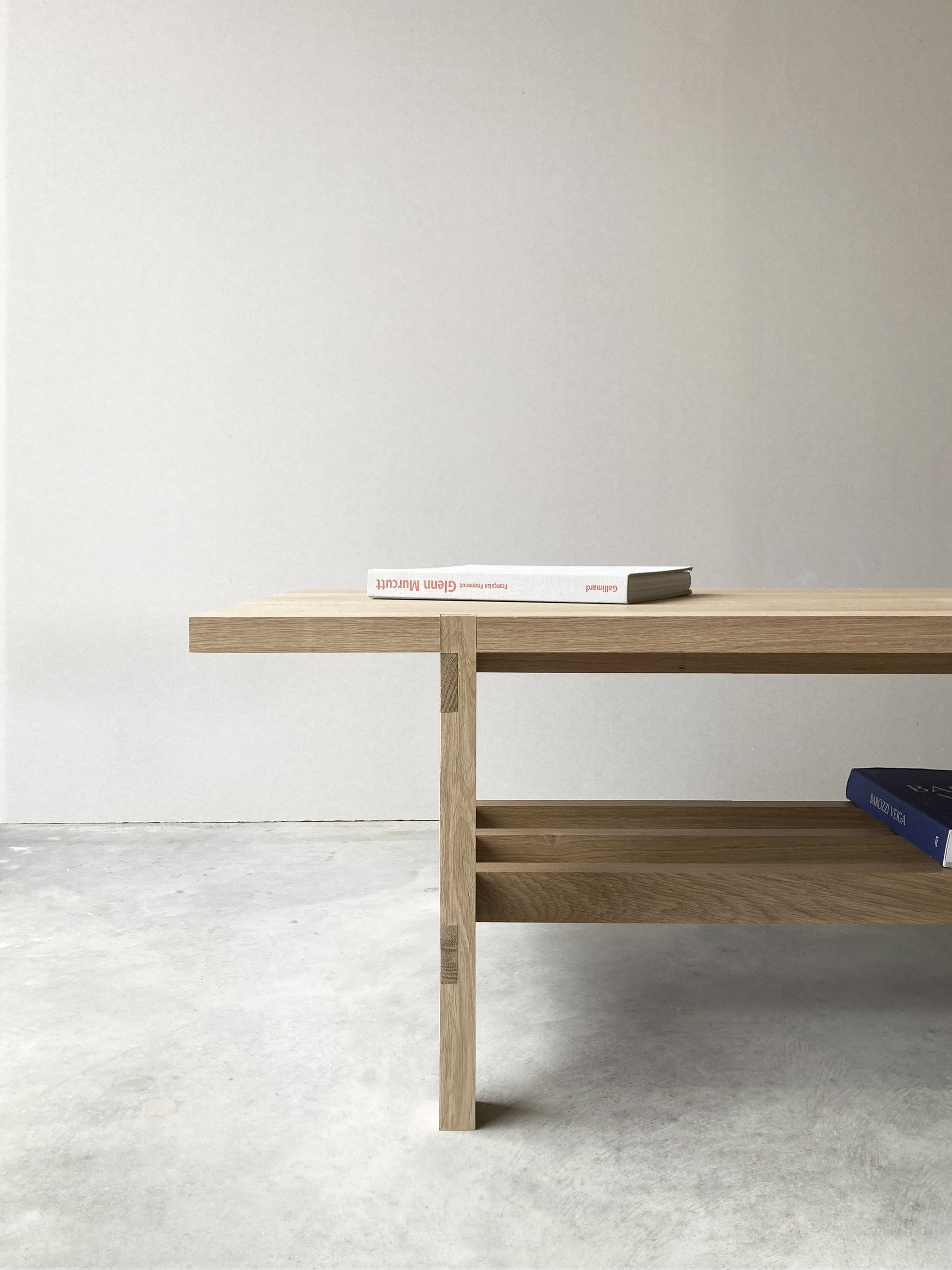 La table basse en chêne massif FIL Mobilier conjugue avec élégance design minimaliste et esprit fonctionnel.
